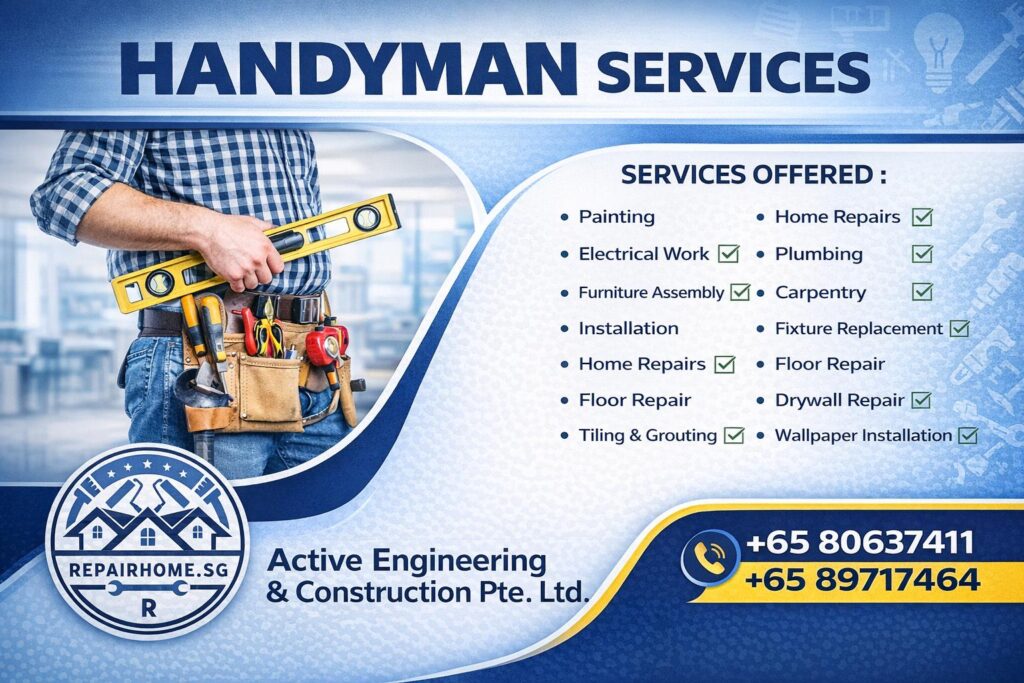 At RepairHome.sg, we are committed to delivering reliable, high-quality handyman and home maintenance services across Singapore. Backed by Active Engineering & Construction Pte. Ltd., we bring professional expertise, skilled workmanship, and customer-first service to every project—big or small.